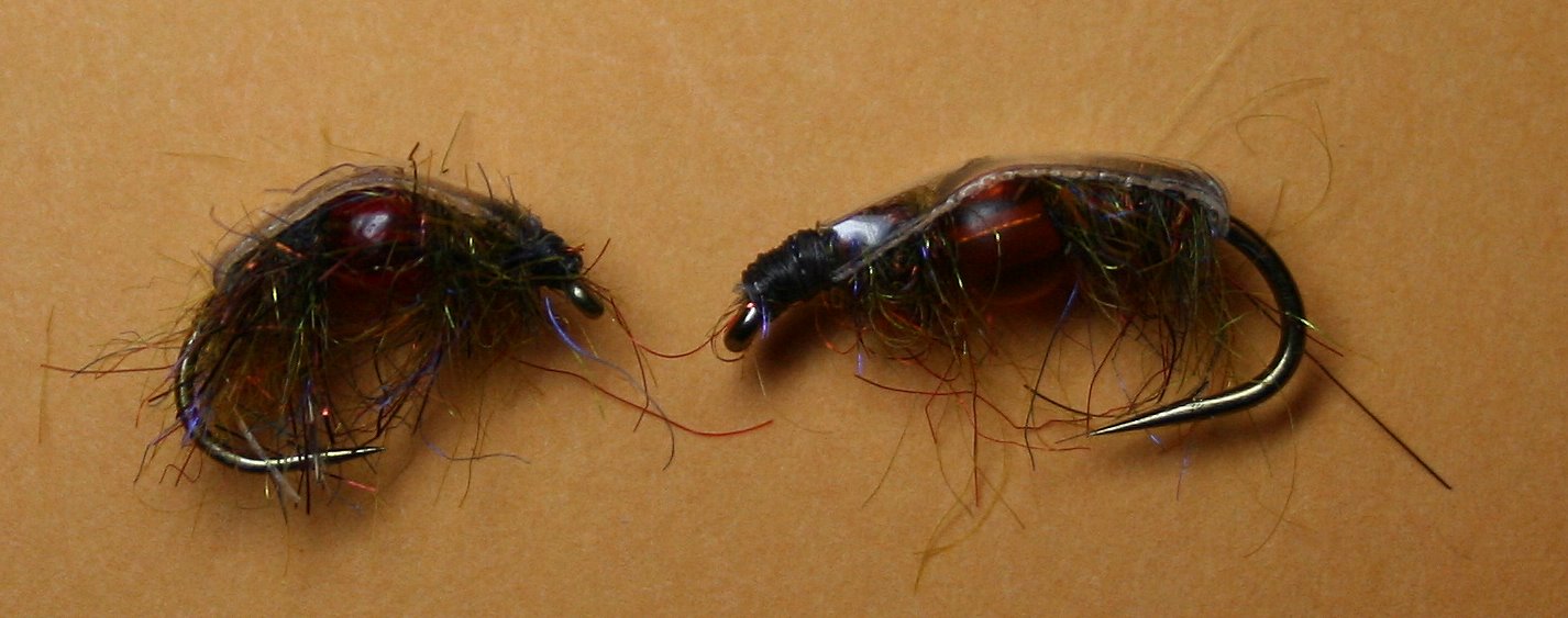 Well, a pretty unimpressive start in tying something remotely similar to the Ian James’ scud pattern. I tied one on a curved shank hook and the other on a straight shank hook. No ribbing over shellback as ribbing with bead in center of shank problematic. Also, these were size 12 & 14 hooks, so as I downsize not sure how this pattern will shape out. These look pretty good in person, so I need to as with all smaller flies, pay attention to the proportionment of materials while downsizing.