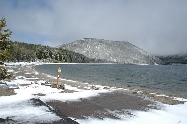 Photo courtesy of Larry Tamiyasu via Lynn Dingler (renowned Oregon flyfisher). Pumice Slide off in the distance from the East Lake Campground boat ramp.