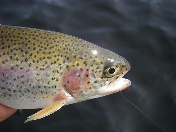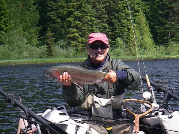 This past Sunday, I was working the Little Fort Leech slow and low with the wind. I had had a successful morning picking up hatchery fish, but of no size.  I decided to switch from the heretofore successful Orb to the Little Fort Leech and to fish deeper water. My plan worked! The only one like it for the day. Yes, it is a hatchery fish, but it was a fiesty trout and for once my son, Tony, was not at the other end of the lake. So, I got a picture. Many fish were caught today, but this one will be added to my special moments. It barely made it into the net. The fish was quickly released and swam away with a strong flex of its’ tail. This fish was caught from a Cascade Mountains’ lake.