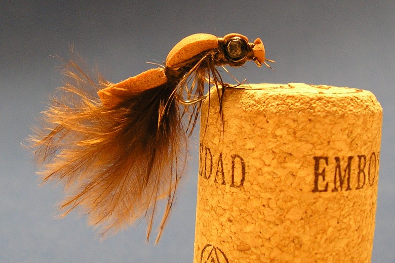 This is a nice shot also. I noticed the dumbbell eyes on the top of the shank. I believe this will usually cause the fly to flip over with the point riding on top (like a salt pattern). If so, the foam body serves what purpose? Not saying to use it. I wonder if the lighter plastic eyes would keep the fly upright and better utilize the addition of the foam. Two nice shots from a Carp Fly Swap, 2006. I show them because the tying components are a bit different. Not saying they are wrong, they just jump out to make me think.