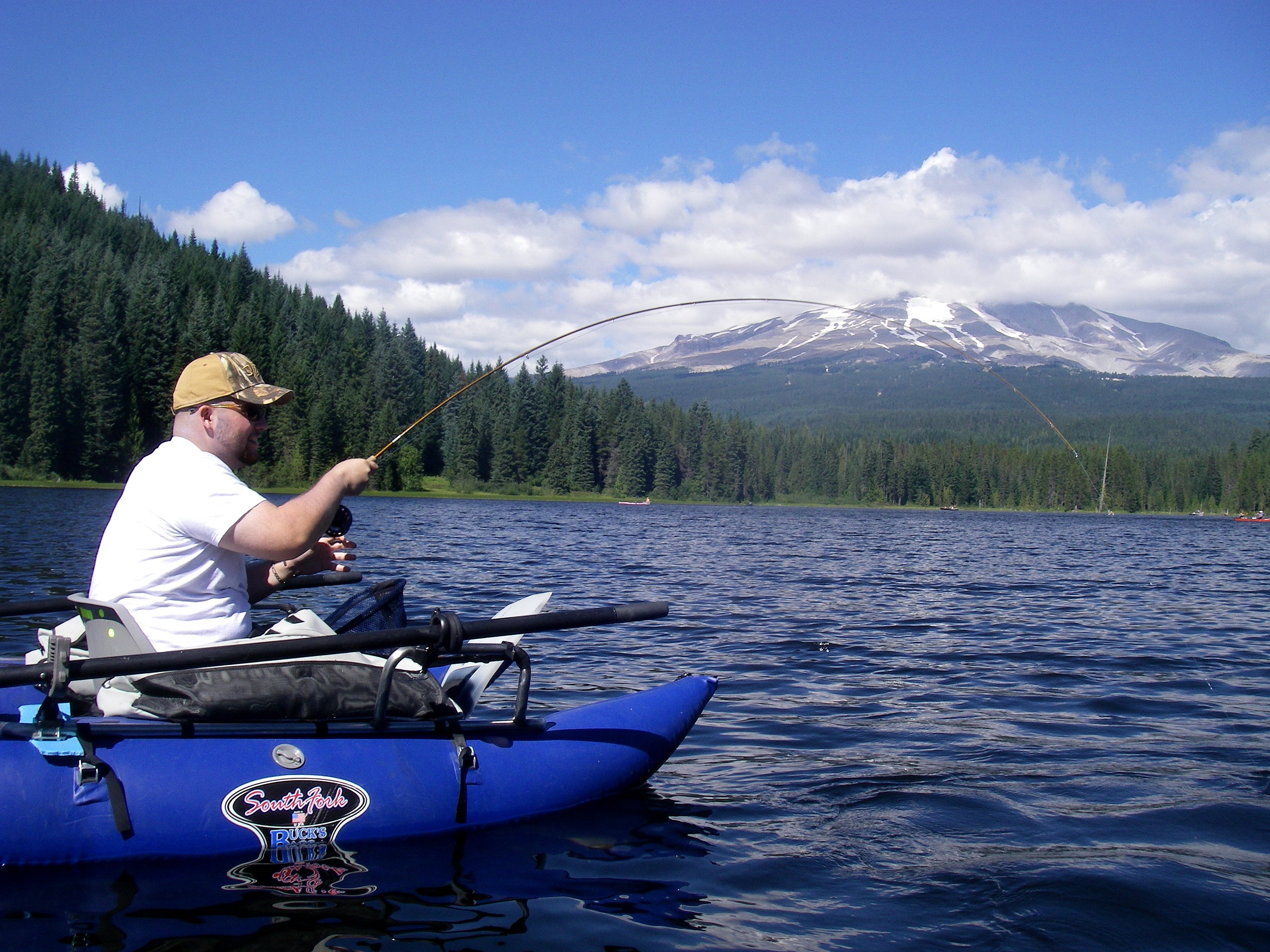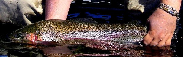 Tony fished with a 3wt., a clear intermediate line and his favorite color-green. He understands being undergunned with a light weight rod and the concerns, if you are a C & R advocate, of taking too long to play a fish you plan on releasing. The fiesty trout he hooked had no intention of coming up anytime soon. The rod (a Sage Launch) was up to the challenge, even at a 3wt. The rod and Ross reel performed well on the stillwater.
