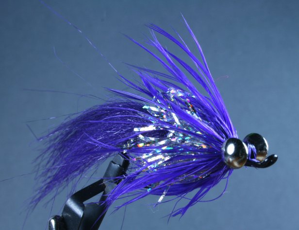 Picked this pattern up in two colors (my favorite two) at The Caddis Fly Shop in Eugene, Oregon (nice shop, nice people, great advice). This is a straight forward Comet pattern. The heavy dumb bell eyes will flip the fly over with the point up. The tail could use some flash, but really that thorax with the flashabou collar is a great hot spot along with the color. I am going to try these this Fall, along with some Intruder, Hobo, Hobbits. These new names and designs are all different then the old Green Butt Skunks, Babine Specials, Stewart Specials and Skyhomish Sunrise. Boy did that date me. Unless your good with that Spey rod..barb the hooks for sure; you or your buddy will appreciate it.