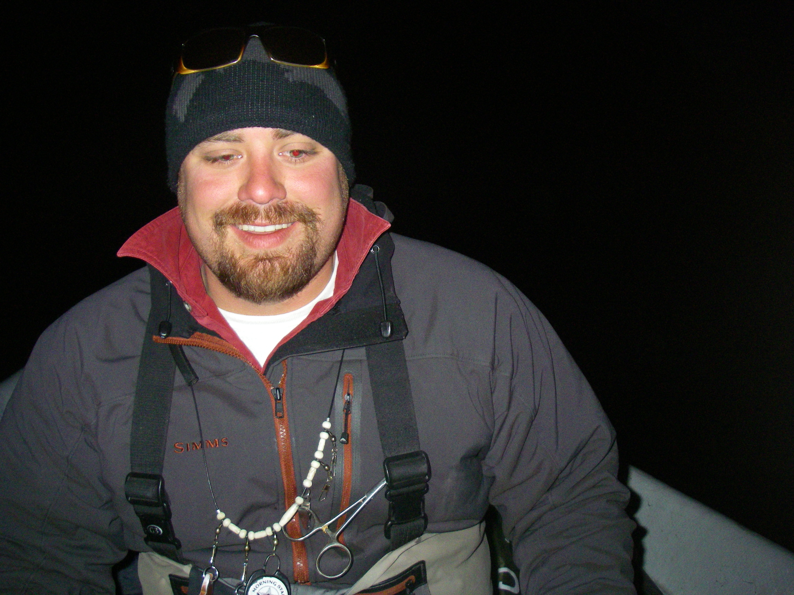 We hit the bed early and planned on meeting Matt McCrary at 6AM…not too bad. Tony spent the night with Matt at the guide’s trailer…no propane, no heat, frozen pipes and a long night. Evan and I suffered through a heater that would not turn off and kept the room at a steady 78 degrees. I would come to crave that broken thermostat. We awoke to cloud cover (no stars) and frigging COLD! I was dressed in hi-tech fibers and within minutes the hammer had already stared smashing my fingertips and my snot was on the verge of freezing. I don’t think it was much below 25 or so, so I may be exaggerating about my snot, but I was already vibrating and uncomfortable. The other problem that became evident the day before was what happens when you have 3 rods and 3 mindsets of taking care of their own gear in a confined space..certain things become immediately evident: