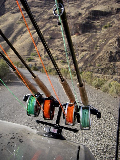 Sage Z-Axis Rods with Ross Momentum and Loop Reels strung with Scandie heads ready to go. Cruising the washboard between Mack’s Canyon to Maupin.