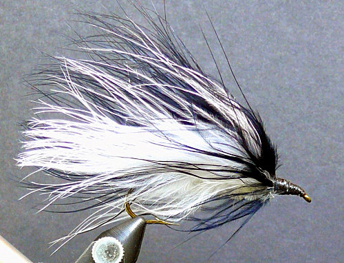 “A standard streamer pattern for the Owens and East Walker Rivers. I first used this fly on the Owens River Ranch in 1976. Fish on a full or sink tip line with 3ft. of Seaguar 2X-4X Tippet material depending on hook size. I usually fish quartering downstream, roll casting to the bank with a swift pull on the fly as it swings under the bank. Rod tip and stripping action may be altered to fit the situation. I sometimes add twist-ons or shot depending on depth and flow to get the fly down DEEP. I try to use a slip strike to set the hook- they can be jolting. An alternate method I have employed, is to cast the fly upstream, place the rod under my right arm and strip just ahead of the current flow with BOTH HANDS. This practice has culminated in more than a few suprising results…”