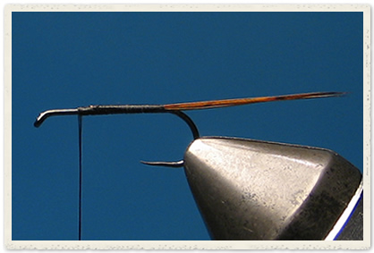 When I tied that little wire bodied number yesterday, I remarked on avoiding the ‘fat ass’ or bump/hump at the rear of the hook, at the bend, where many materials are tied in. Craig, a helpful commenter, remarked that this can be avoided by tying in materials at the normal point (at the end of the shank approximately above the barb) then wrapping back over the materials up toward the thorax area, which provides a uniform taper and thickness to the abdomen…or, he suggested, using tying thread to raise/form the fly’s shape and thickness and create a uniform shape. Two excellent ideas to avoid that excessive rear end.