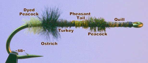 Not quite as visual as I had hoped. The pheasant tail and turkey feather fibers got a little overwhelmed by the ostrich, but the peacocks shined.