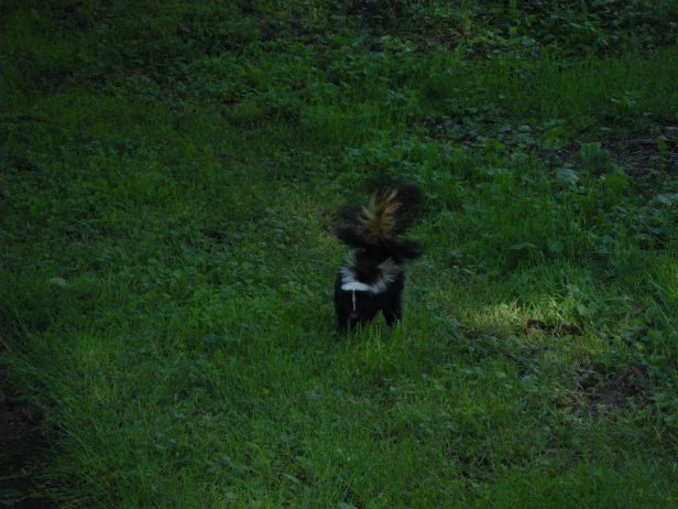 Craig…your comment kind of gives me the shivers because as I kind of circled and the skunk did this matching of my movements to be squared…the skunk made this funny movement with the front feet like a little stomping movement…well, my daydreaming, watching my toes as I walk along style will be more aware from now on….thanks for the comment