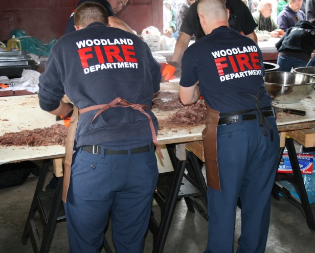 This 87 year tradition is taken quite seriously. Old timers (fire fighters) show up to make sure that the tradition and process is adhered to. All that meat is chopped up and used to make thousands of BBQ sandwiches.