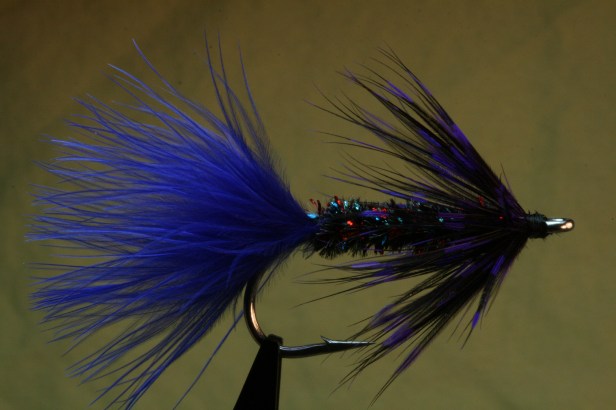 Chenille bodies are not seen as much anymore for steelhead/salmon patterns. Bodies are slimmer. But, there are some nice chenille’s out there that have more benefit than just for Woolly Buggers. Here, I was playing around to see what the color combos would look like. Most appealing is the chenille’s highlights and that brilliant blue in the wound guinea hackle.