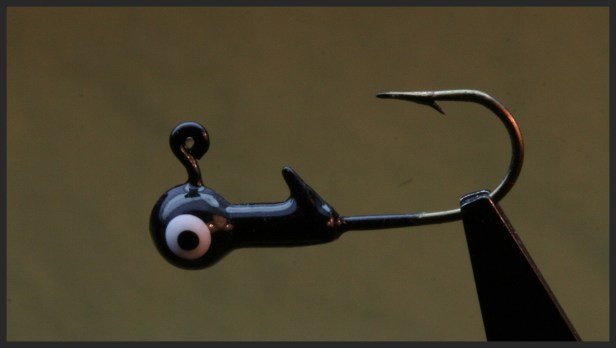 I found these little jig head hooks (wt. 1/32 oz) at a big box sports shop (oh yes purist, I go to a few of them now and then; no shame here). I wondered if the angle of the presentation with the eye atop the ball would make for an interesting presentation of the heavy nymph and a trailing nymph from the bend of the hook. Will try this and see how it presents. Jigs beneath a bobber are a successful option for NW gear guys chasing Steelhead (no, I won’t use a mega-strike indicator/bobber). This is a much smaller option that may provide an interesting short line/dredging option while nymphing for trout or small mouth. Standard fair for much of the country for warm water species. I flatten down the spike at the neck, which secures tubes and skirts.