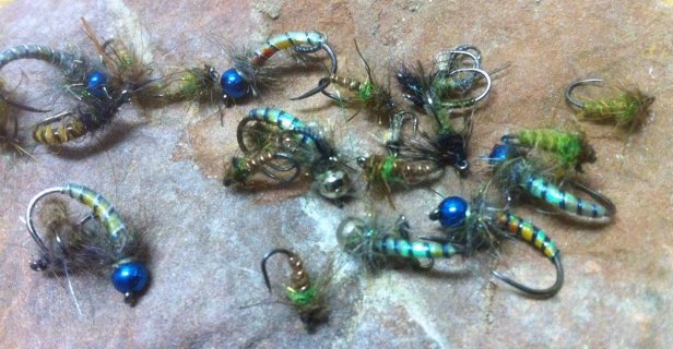 Blue in trout flies is a color I seldom consider. Chad Gauerke (Life on the Fly) uses the blue bead and ribbing and it pops doesn’t it? My son has tied Lighting Bug nymphs with blue and less silver. Blue/Purple are highly visible deep in the water column. Worth a consideration?