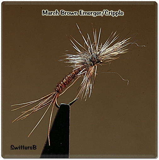 The possible front end of the March Brown hatch could result this month. I have been tying chunky tannish-brown GRHE’s for nymphs and have some dozen or so adult patterns that I tied, but never got to fish last year. I thought I would tie up an emerger pattern and after that I will tie up some wet flies for the March Brown hatches, should I be fortunate enough to land on a stream with the hatch.