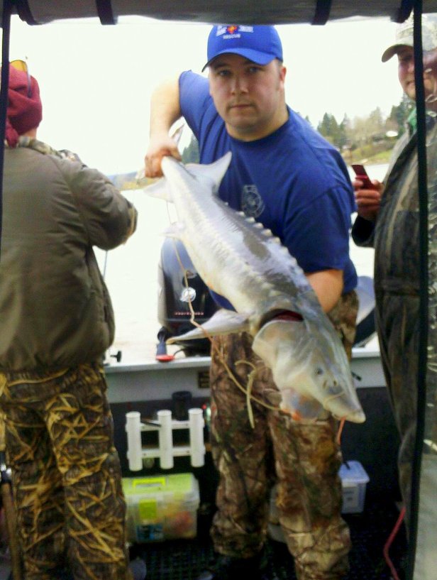 Sometimes A Man Has To Do What He Has To Do! Tony Muncy out with his uncle, Richard Zach on the Willamette (Columbia River for Sturgeon.)