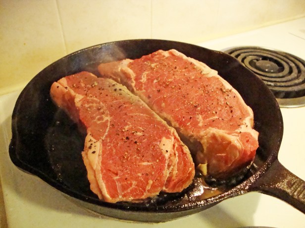 When I was a kid there was not a BBQ in our family. Steaks were cheap cuts and maybe cooked in oven under the broiler, spattering and bursting all over. More often they were fried on the stove top. Seems odd these days when many have gas grills on the back deck or charcoal BBQ’s. Of course, the ‘old’ way is still an option (outside of restaurants):
