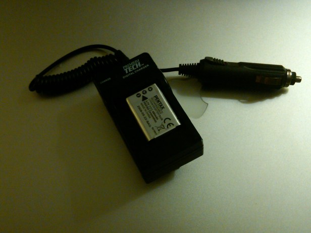 More than once, my battery for my Pentax Optio W60 has died on a trip. Yesterday, with a dead battery and the original charger ‘borrowed’, I went looking for a replacement at a camera store. I found a charger unit for different Lithium batteries that not only plugs into the wall, but also the port in my truck. As I drove around on business, my battery recharged in no time. This will be nice in the field as well.