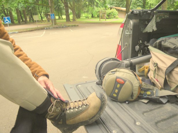 The elastic gravel guard (in this case Simms) is an inexpensive investment in protecting your stocking foot waders. The guard fits tight over the top of the wading boot and keeps a lot of gravel and grit out of the boot to cut abrasion against the neoprene stocking feet. You adjust the tension. One end has a velcro strip which provides strong closure. I have used these for years and find them a great investment. Although they are not really necessary, I use them when fly fishing lakes as well. Some stocking foot waders have a built in gravel guard that does an adequate job of filtering out gravel.