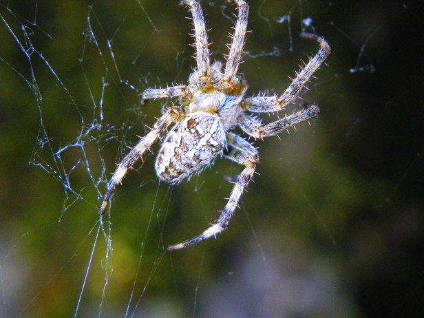 To me, there is nothing seemingly ‘common’ about this spider. It was a long ways from any garden as well. As I explored along the rocky shoreline of the Clackamas River, I came across this sizable spider working away on a web. A steady up river breeze ushered along hatches of assorted Caddis, PMD’s and midges. Remnants of a sizable Stonefly emergence littered the moss covered boulders. This busy spider prepared to intercept some portion of the shore bound insects. Once he was done, he tucked himself beneath some mossy growth attached to a boulder that supported his fly catcher. You are exactly right: the fishing was less than stellar on the Clack/Collawash R., so I passed off the time looking about the shoreline for this and that.