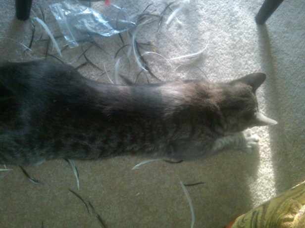 Well I have written here at length over the woes of infestation in your fly tying materials. Moths and mice have been my nemesis over the years. But recently another critter has weaseled their way into all manner of fly tying materials: Penelope the Cat. You may recall the rescue of Penelope in early June from a tall tree. Never a dull moment sense then.