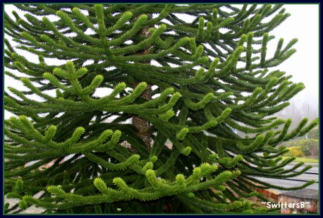I have been gazing out the window of a care facility. My aunt is in hospice and I have been spending a great deal of time sitting beside her looking out the window. I recognized this smaller version of a ‘Monkey Tree’ as I have lived many years in Portland and one can see these 106 year old trees in the older part of town. The one outside the window, is perhaps only 20′ tall compared to the inner city trees which are considerably taller. They are not that common compared to the many other trees in Portland, so unique enough to attract a knowing eye.