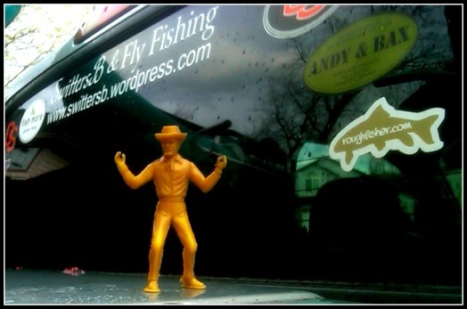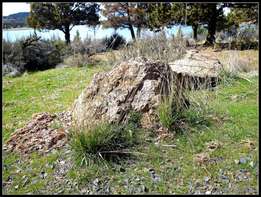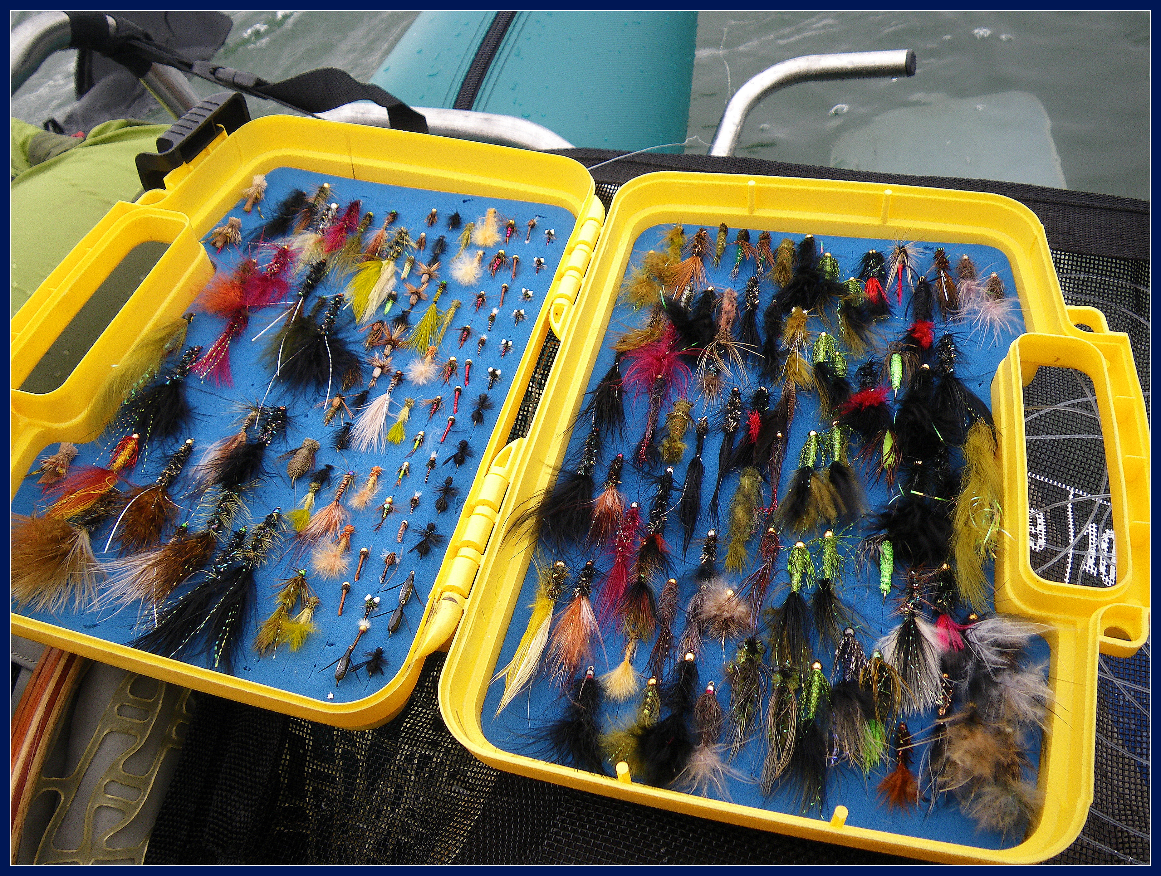A lightning strike? It may have been. The charred bush seemed to be the epicenter. But, then I walked up and saw thicker limbs off of near by trees, the sawed ends giving away their origin. A fire to stay warm that got out of control? Too bad given the fire pits in camps nearby. The fire could have been worse. Excuse the bold lettering.My dependable Ross Reel (the old Cimarron). There are many dependable reels available world wide. I have had great luck with the Ross Reels. I have stayed mid-range in pricing for most, but have purchased starter reels for others at a reasonable, inexpensive price.An empty canal extending out of Haystack Reservoir in Central Oregon. It is part of a greater irrigation canal system that originates from larger lakes off the Hwy. 97 corridor. I liked the stark contrast of an empty canal just beside a large dam holding back lots of water.A Lake Box. Not 'The" Lake Box. There are too many fly boxes loaded into the boat's pouches for there to be but one. This box makes a pretense of orderliness, but it doesn't last. This particular box does not hold Mayfly, Caddis, Streamers or Scud patterns. Those, of course, are nearby in other boxes.The Man standing on my rig's canopy. A silly little toy I found at my Aunt's hoarding home (see Hoarding Woes & You if you want to know why I have not been getting to fish much the last three years). I pose this little guy in various shots as a good luck charm. I also figure I can use his pose to highlight how big the one that got away was....someday.The simple beauty of a rock with some green grass. In this instance, the rock was next to others put there by man, imposing 'natural' barriers to off road travel down to the lake. Partly this is great to avoid erosion and destruction. But, it keeps RV like rigs and vehicles in the full high desert sun. I don't have AC in my ancient tent trailer, so as much as I would like to camp near such a spot, the thought of hours spent waiting for the trailer to cool off, even with windows open and winds blowing, is off putting. And, I'm not going back to tent camping....thank you very much! So, the rocks win. That's ok.