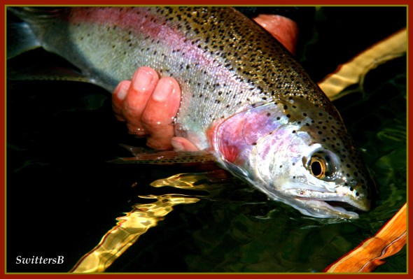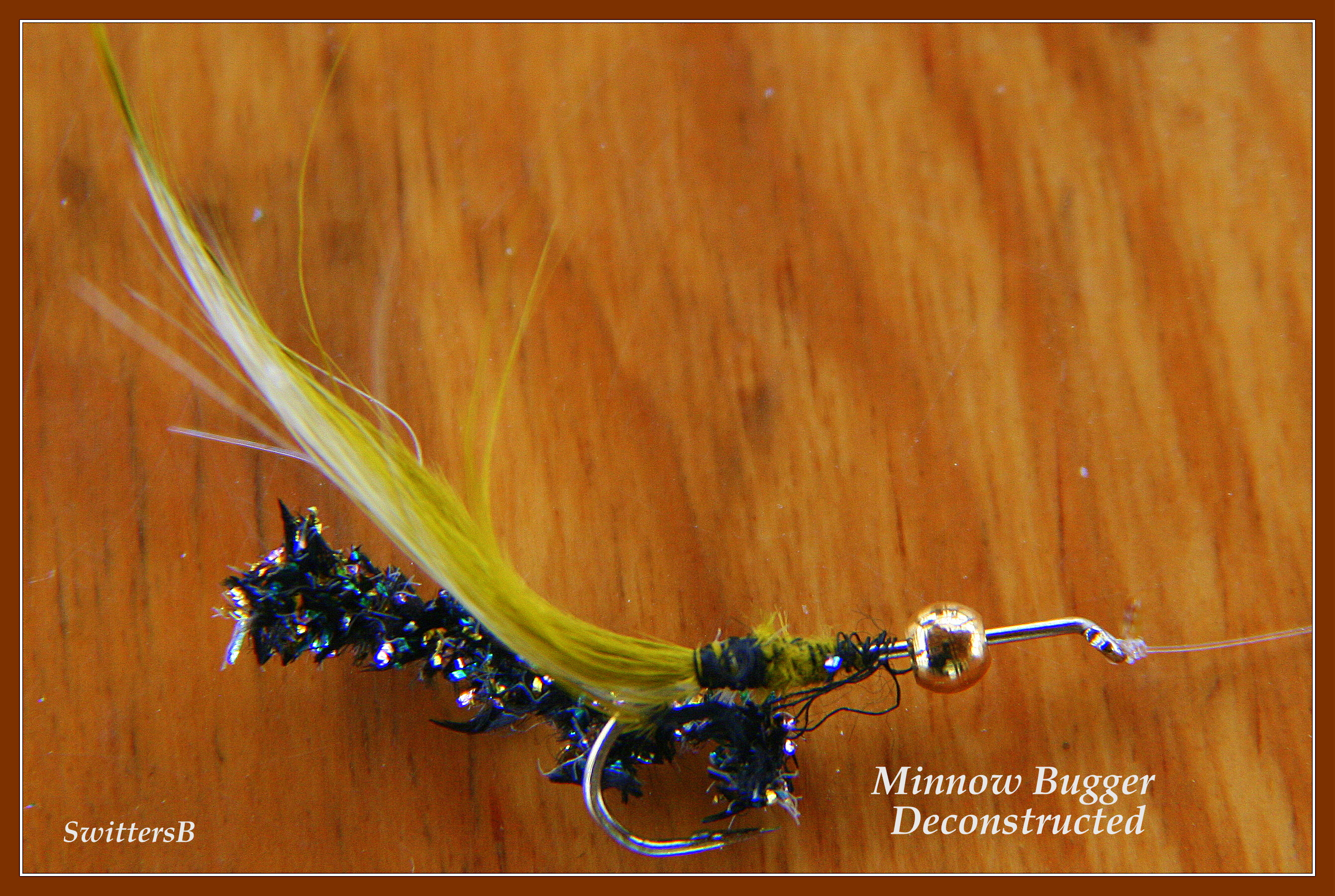 This was my wife’s Minnow Bugger, minus the hackle, after releasing another fish. Several times the hits were so jarring, her tippet came away minus the Minnow Bugger. NO! I don’t have any financial~commercial interest in this pattern.