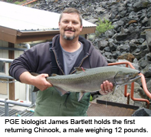 “A 12-pound male salmon, one of thousands of Chinook that biologists and volunteers released into the Upper Deschutes tributaries above the Pelton-Round Butte Hydro Project in 2008, has made history. It’s the first fish to return. A fish with its right maxillary bone clipped — a marker indicating it was released in the Upper Deschutes tributaries, swam into the Pelton fish trap on May 25. The fish had migrated down the Deschutes River in 2009, spent two years in the Pacific Ocean and swam up the Columbia River and 100 miles up the Deschutes.”