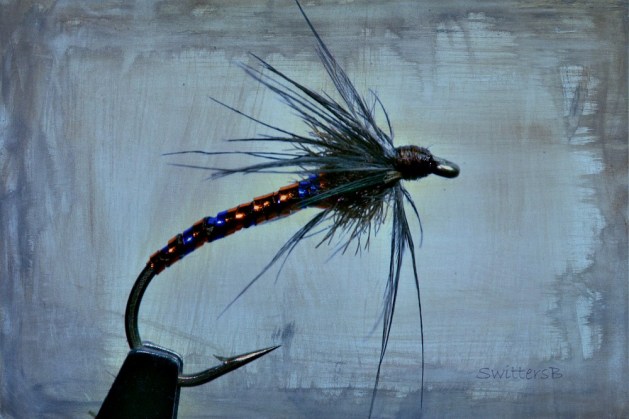fly tying, Photography Fly Tying: Macro’d Copper & Blue Wet Date: August 11, 2012Author: SwittersB & Exploring 0 Comments A simple wet fly with strands of copper and blue krystal flash, a peacock herl thorax and a couple turns of Starling all on a size 14 hook. A macro shot picks up that blue pop in the abdomen. Please Share: Click to share on Pinterest (Opens in new window) Pinterest Like Loading... Related