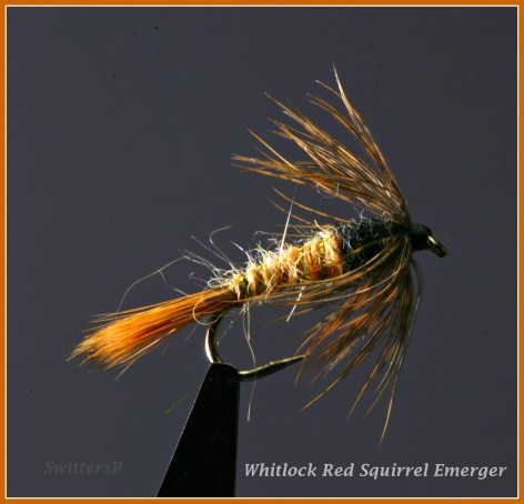 Here are a few links on tying the Whitlock Red Squirrel Nymph. I am not trying to be a rebel or non-traditionalist with the ’emerger’ use. It just is how I would fish this fly…bottom and up to the top…more in the top layers.  Semantics, purely semantics. I use Krystal Flash for the ribbing rather than tinsel. Wire could be used or the traditional tinsel. Red Squirrel was used for the tail, but bunched hackle fibers could be used too. (How to) (How to)