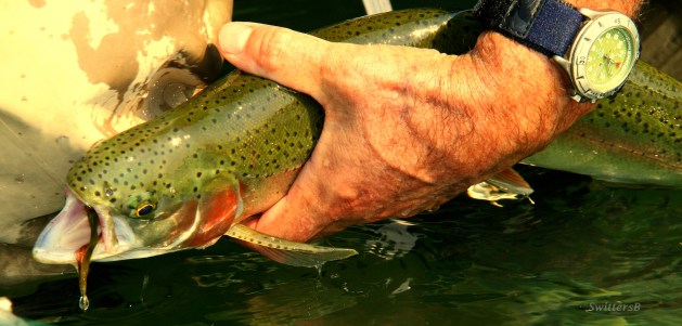 Attention must always be given to how the fish is handled once at hand. Keep the hooks barbless. Use efficient pliers. Do not pull on the hook. It either backs out of the hooking spot. Do not pull! Consider cutting the line if things are getting clumsy. Cut the line close to the mouth. Trout Caught/Released.