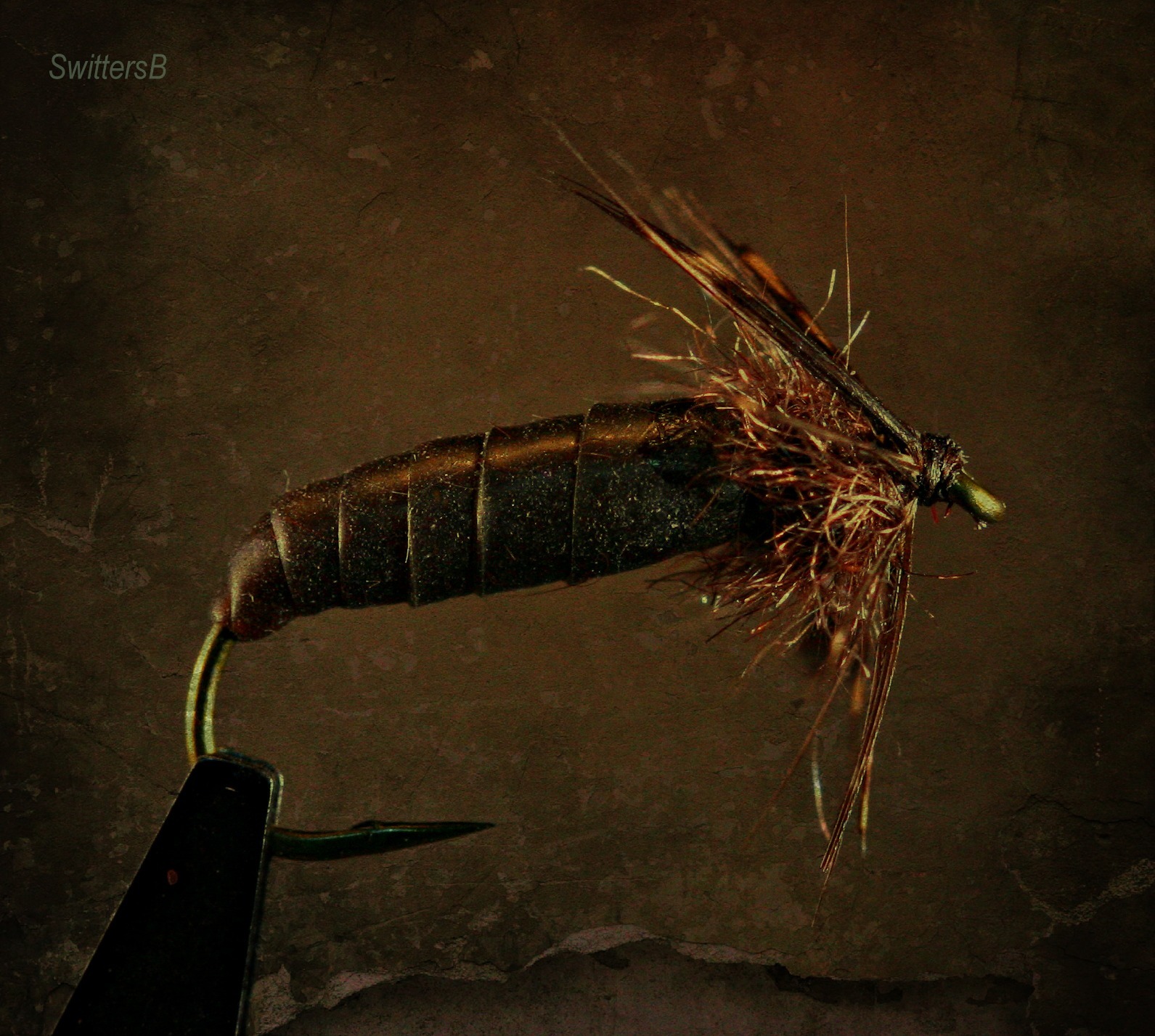This seemed somewhat innovative several decades ago…wrapping narrow sections of stretchy latex up the hook shank, one slightly atop the other to form a plump, segmented body. Yet, you rarely see it now.  I rarely think to do it. It is a simple technique in the scheme of tying and with color markers (upon lighter colored latex strips) can appear very realistic. I include a nice Step by Step (SBS) tutorial from a 2007 post by Overbrook on the SE Fly Fishing Forum. It provides a nice visual re the segmented appearance of wrapped latex.