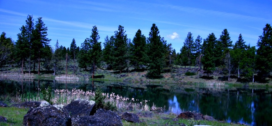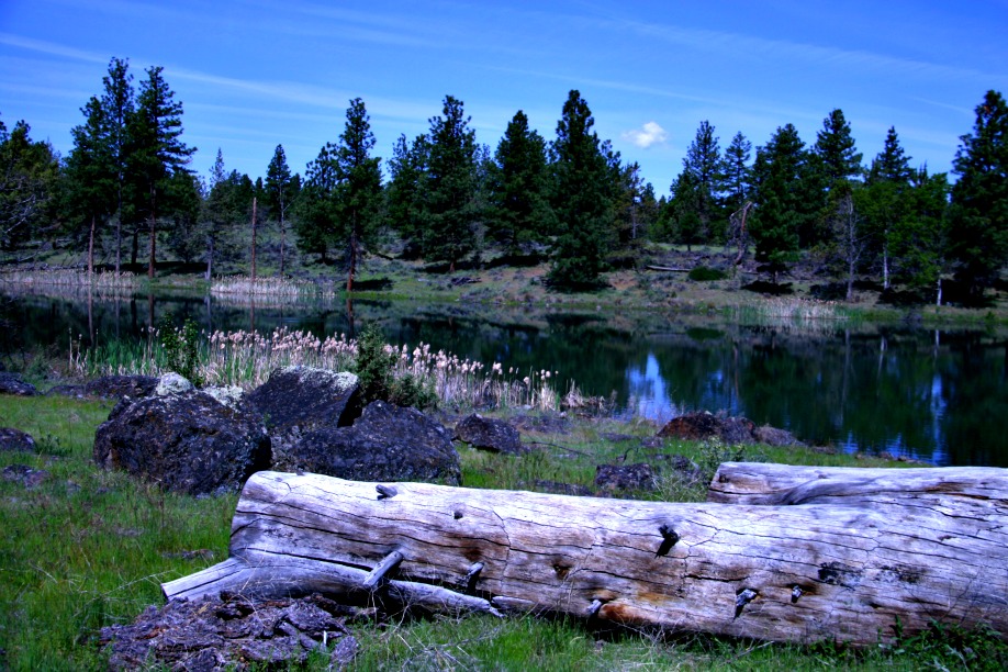 I originally took this shot on an early morning as I prepared to fish. The placid water, old cattails, rocks, green grass and the old logs combined for a rustic yet calming feeling. But those logs had been cut at some point and don’t ask me why it grated at me. Everything else was natural, but the log although worn on its sides had been tended to with a saw at some point. Small detail I know but it bothered me.