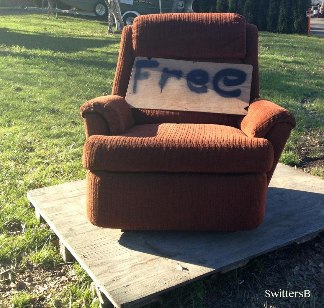 People are so generous in Portland. I mean where else can one pack up the ‘old lady’ and drive about the nicer parts of town furniture ‘shopping’. On any given day, rain or shine, one can find upholstered couches, ottomans, chairs and mattresses on the corner or sidewalk. Even boxes or piles of old clothes can be found laying about. Today was a beautiful, sunny day in the low 30’s…a perfect day to see what could be found.
