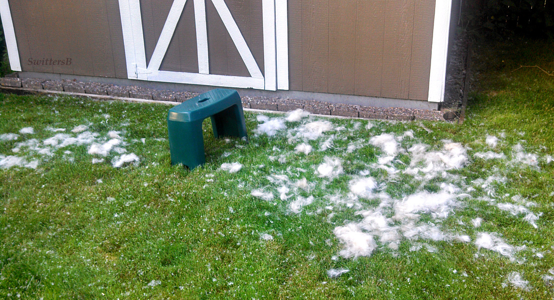 This week, my wife decided she had to do something besides the ‘normal’ brushing. So she took Emma out back and sat down to brush out some of that hair. Pretty ghastly isn’t it. And, it leaves no doubt that brushings, vacuumings and lint brushes will never fully conquer the hairs of a Yellow Lab.