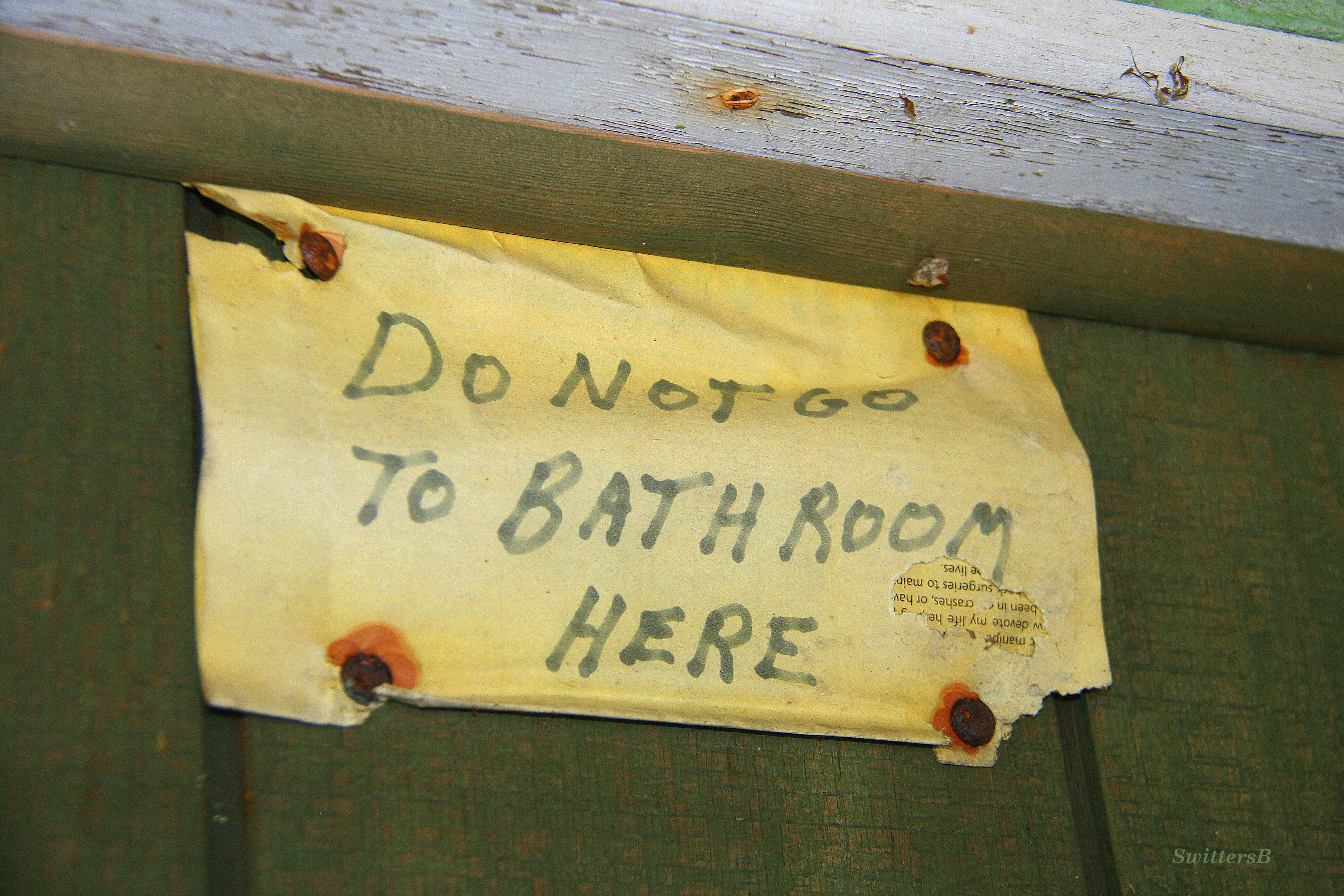 The don’t pee here admonition was nailed to the wall in a somewhat remote spot where someone might sneak to for immediate relief.