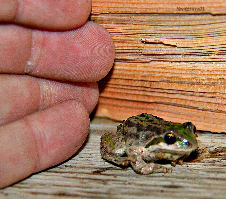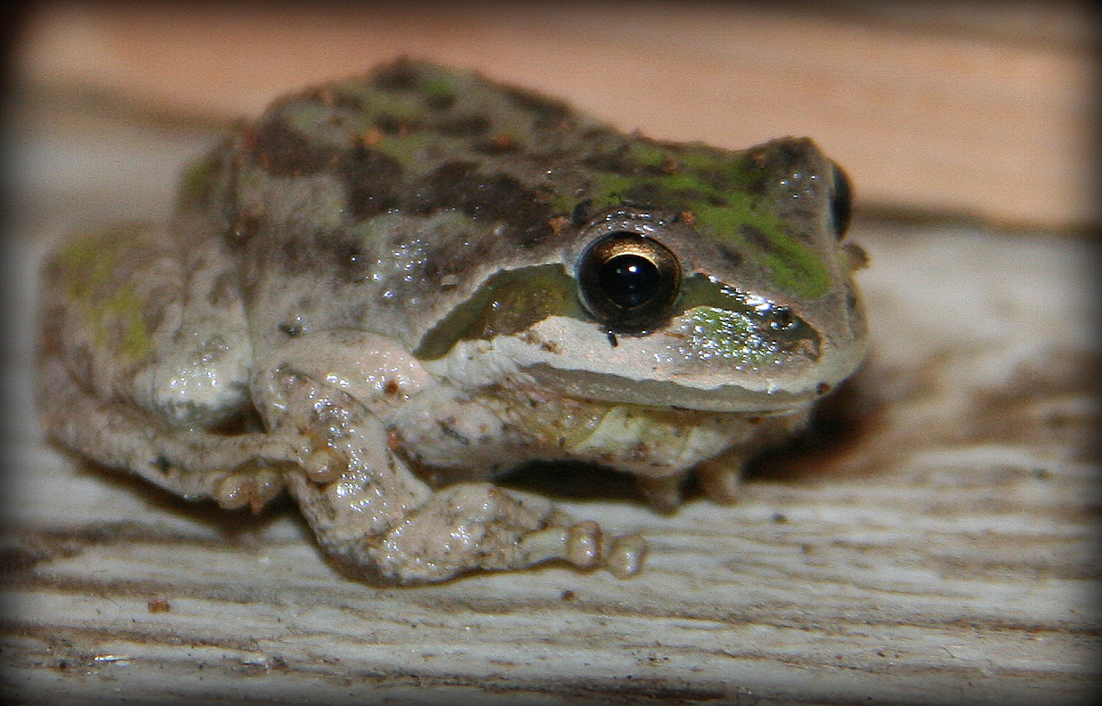 I scraped away the gunk and fluff. And there sat Leapy the Frog (It is a long story of my children traumatized by Dad returning ‘Leapy’ the Frog back to the lake side vegetation rather than taking him home from a camping trip). I grabbed my nearby camera and snapped a few blurry shots and then I once again returned Leapy the Frog to the wet, boggy environment of the lake side.
