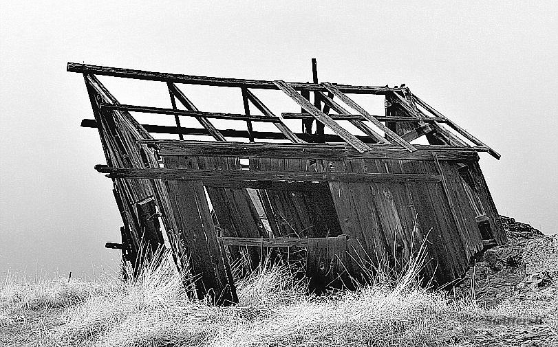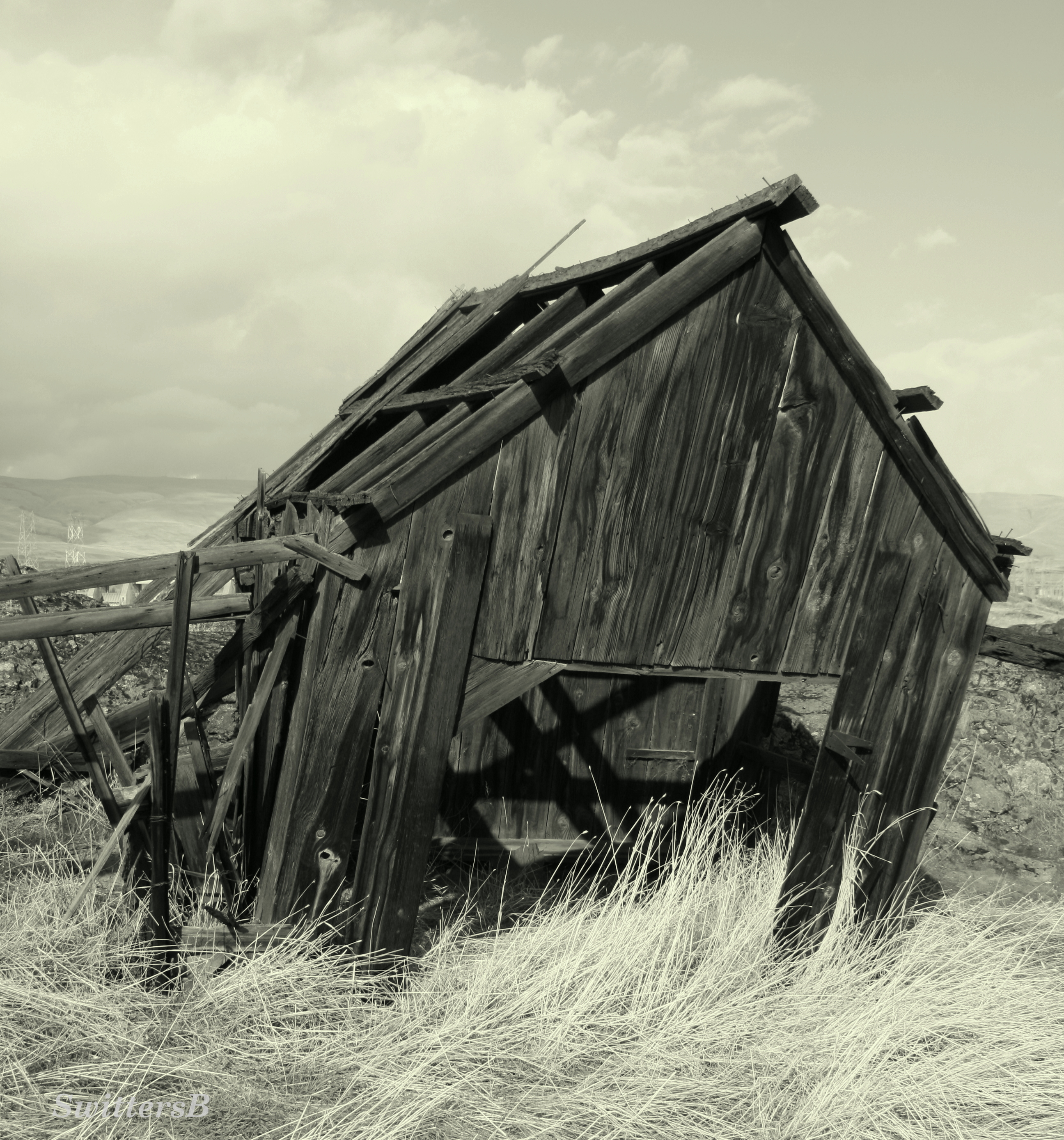 As Winter approaches with heavy winds, snow and ice just how much more can these old timbers take before the weight forces the structure over. The missing roof no doubt helps reduce some of the burden. Photographing old, weathered boards and structures resonates in me. The beauty of the grain, the weathered appearance are pleasing. But, beneath that is the historical & human questions of who, when, how, why etc. that always are there. I like that.