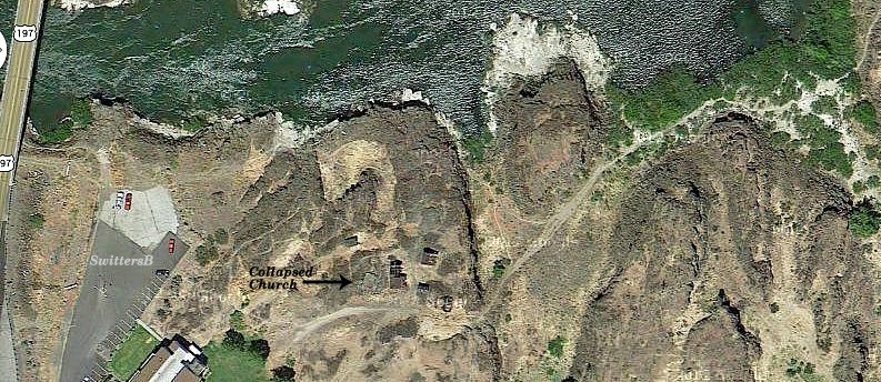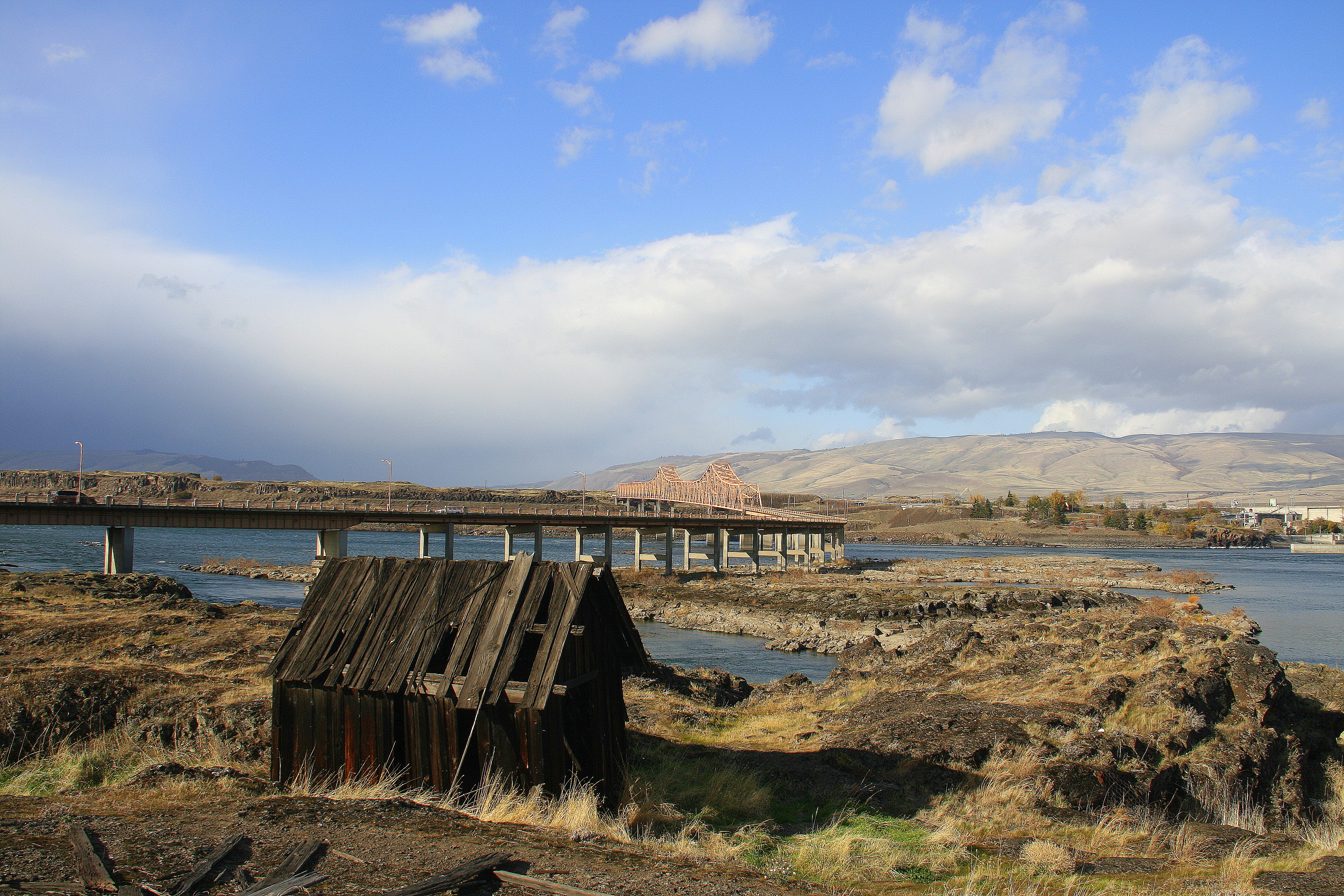 The bridge joins Oregon & Washington states. The original church was moved because of the bridge right of way and a motel construction. The building in this shot was the northern most structure still standing. SwittersB