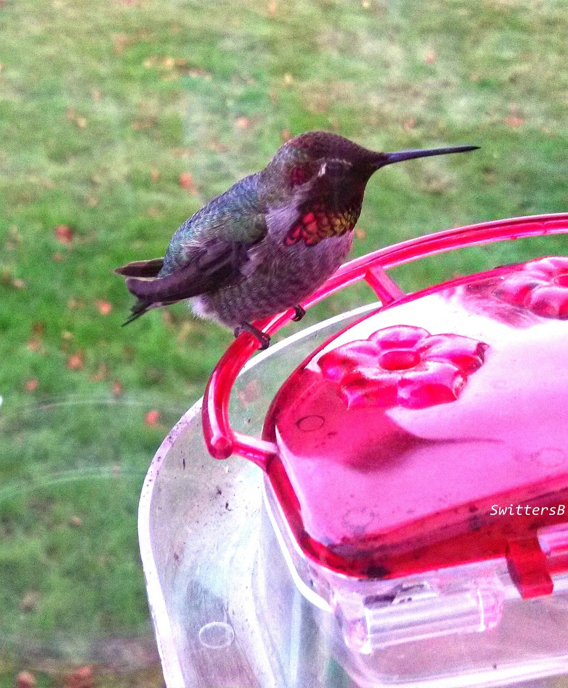 Several of you here feed Hummingbirds. My Mom-n-law has quite the loyal following of hummingbirds that seem quite comfortable with up close viewers. I shot this through the window inches away with my cell phone. East wind was blowing hard against the window/feeder/bird. The feeder was empty. Oh my, a calamity to the caring bird lady! The feeder was filled in short order.