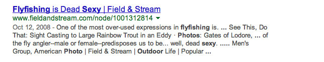 Today, fly rods, fish porn, reels, lines, waders, boots, destinations, fly patterns, insects and materials are sexy. Hell, if ping pong can be sexy anything can be sexy I suppose.