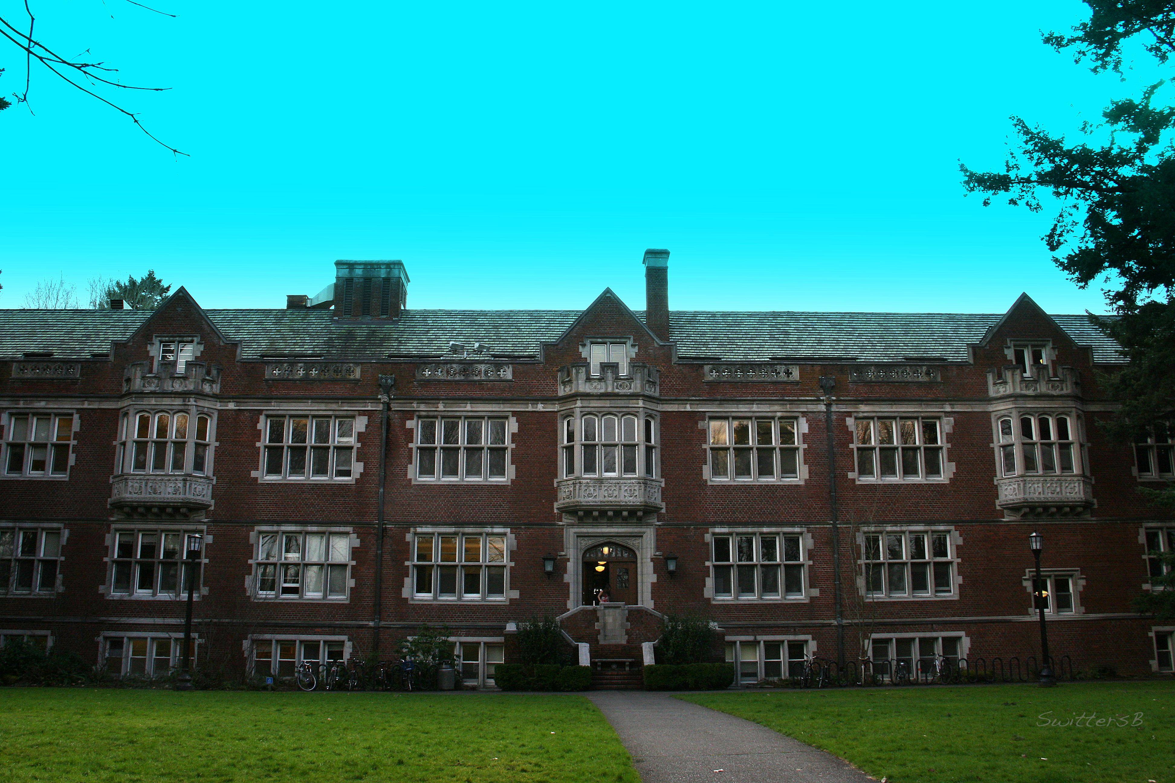 On a recent hike along Reed Lake (Portland, Oregon), I had occasion to walk up out of the ‘Canyon’ onto Reed College campus. I took a quick shot of a building and moved on across the Blue Bridge to the other side of the lake. Today, I was looking at the image and decided to use it here and a little research was in order (style, name, etc.) Well, as a result, I learned a few interesting things.