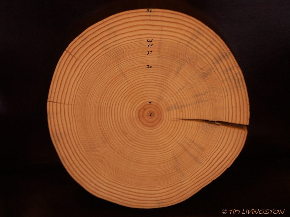 The tricky part of determining climate history from tree rings is that climate is only one variable that affects tree growth. Using tree rings to examine climate is best done with very old trees. Knowing what the forest was like around the tree as it grew, is also important. Corroboration with other old trees in the area is essential. In the early years of a tree’s life, it is often influenced much more by local factors other than climate.