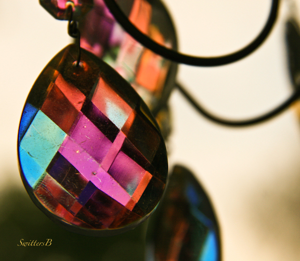 an old wrought iron chandelier, outside for so many years. in the dirt, the tall grass, stacked amongst the forgotten, the ignored stuff of a hoarder. Not a bit of renewal, of touching up. I pulled it from the weeds, hung it from a ladder’s rung. Later, I snapped a shot of the glass bauble (same day I did the roses from the rear images). Despite all the scars, in its own way it is still beautiful