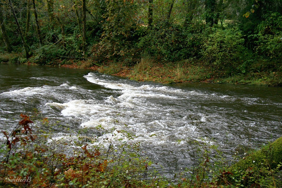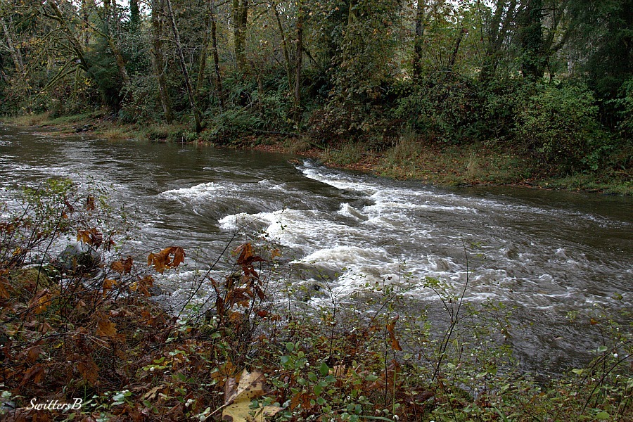I would like to show two spots along an Oregon coastal river I was fishing this week. October has been dry, hence the Chinook Salmon have been kegged up in tidewater waiting for a freshet to move up into freshwater to spawn. This week the rain came enough to raise this river about 18″ in about 36 hours. During this time the holding lies changed, the fish were on the move and the water turned from clear to mocha and then to what is known in the Pacific NW as ‘steelhead green’. The fish came and meaningful connections were made.