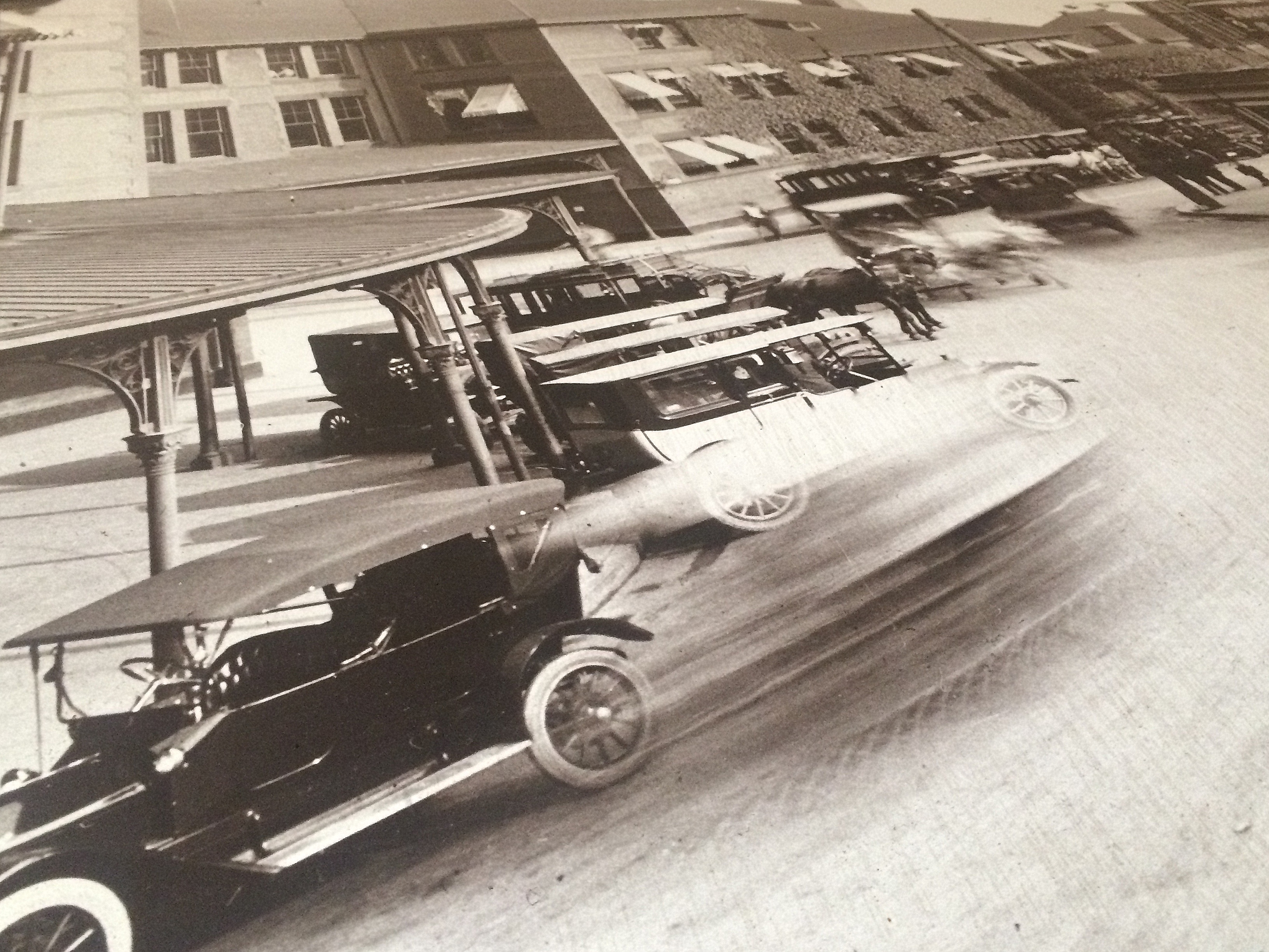 I was visiting the train station (Union Station) in Portland, Oregon. I noticed a large photo on the wall and particularly the car seemingly driving across the image with a blur suggesting motion, but no driver behind the wheel. Hmm?