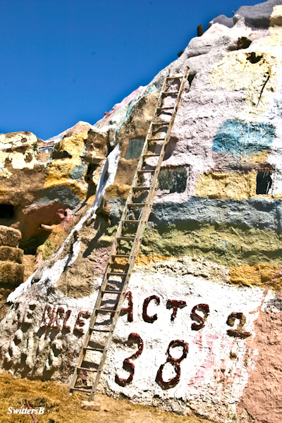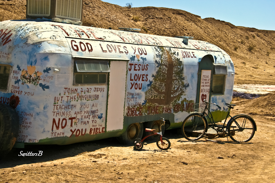 Leonard Knight, the original visionary for the site, started the monument to salvation, redemption, something bigger than himself in 1985. He passed on in 2014 and it appears others are attempting to maintain the adobe/paint of the site. A cult following of sorts defends the site for the biblical concepts and for Knight’s individualism, his determination, his living in a remote area, his guru aura, his kindness. Regardless of why people come, it is a cool site and truly worth a visit. Look beyond your biases here. Many notable people have visited this site, realizing the spiritual intent and inner beauty. Now for some more images.