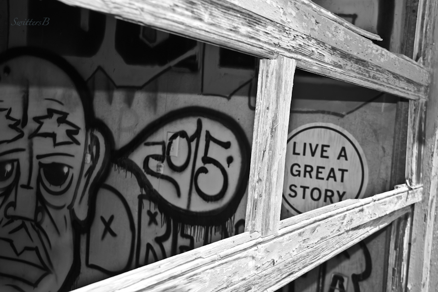 Bombay Beach, California on the Salton Sea. An abandoned shop full of debris, the dark side and some optimism too.