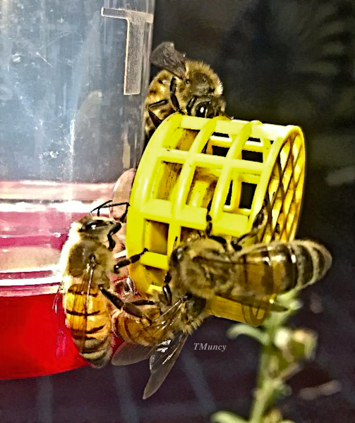 The honeybees and bumblebees use to attack my humming bird feeders all the time. This photo makes me think of all the times they ran the humming birds away.