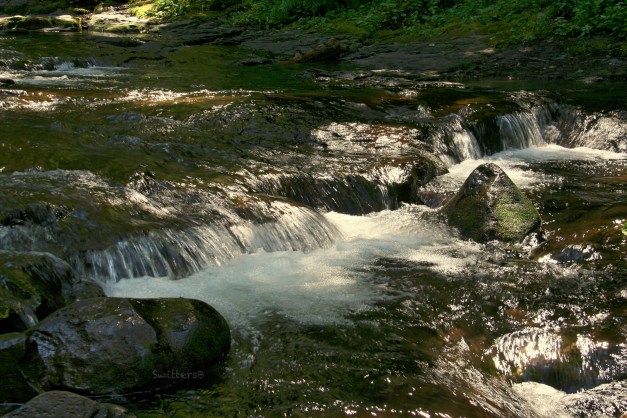 The ‘brook’ is down, exposing a boulder here and there, the shoreline is gradually exposed as the water level drops…but, in the shade, the shaded spot offers a respite from the heat, a soothing sound and usually an upstream breeze to cool the sweat on the brow.