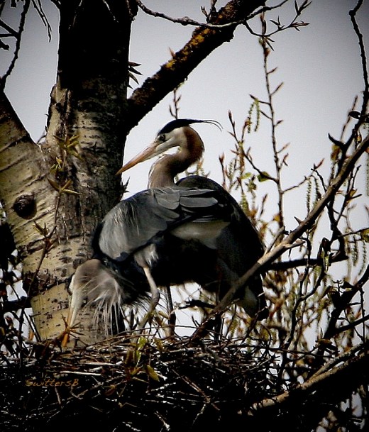 Touch blurry…Great Blue Heron on a nest in the rookery at Sauvie Island, Oregon